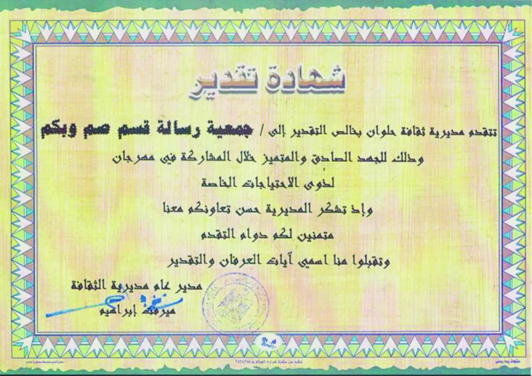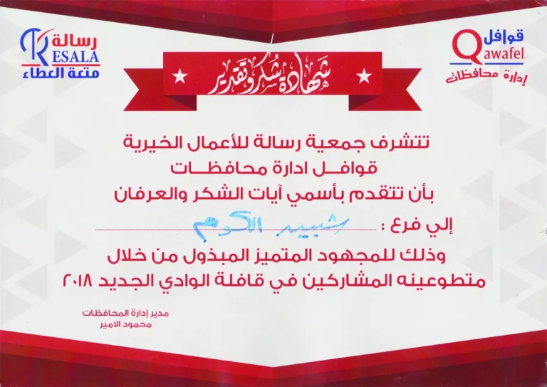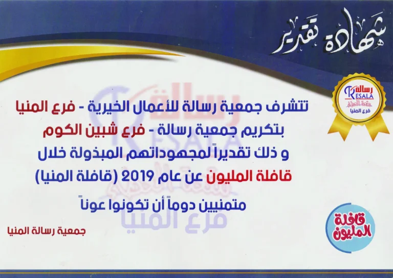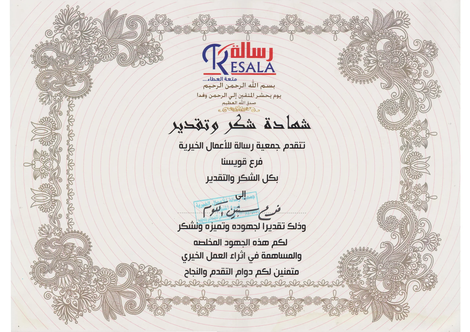 تحولت “رسالة” في عام 2000 الى جمعية خيرية مشهرة بوزارة الشئوون الاجتماعية بعد تبرع قريب احد الطالبات بالكلية بقطعة ارض للفريق كي ينشروا رسالتهم خارج الجامعة