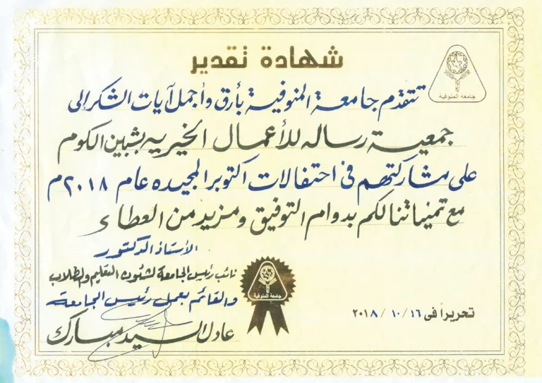 كما تم انشاء اول فرع في المنوفيه سنه 2006 على يد المهندس / أحمد السكرى احد الاعضاء المؤسسين لجمعية رسالة القاهرة